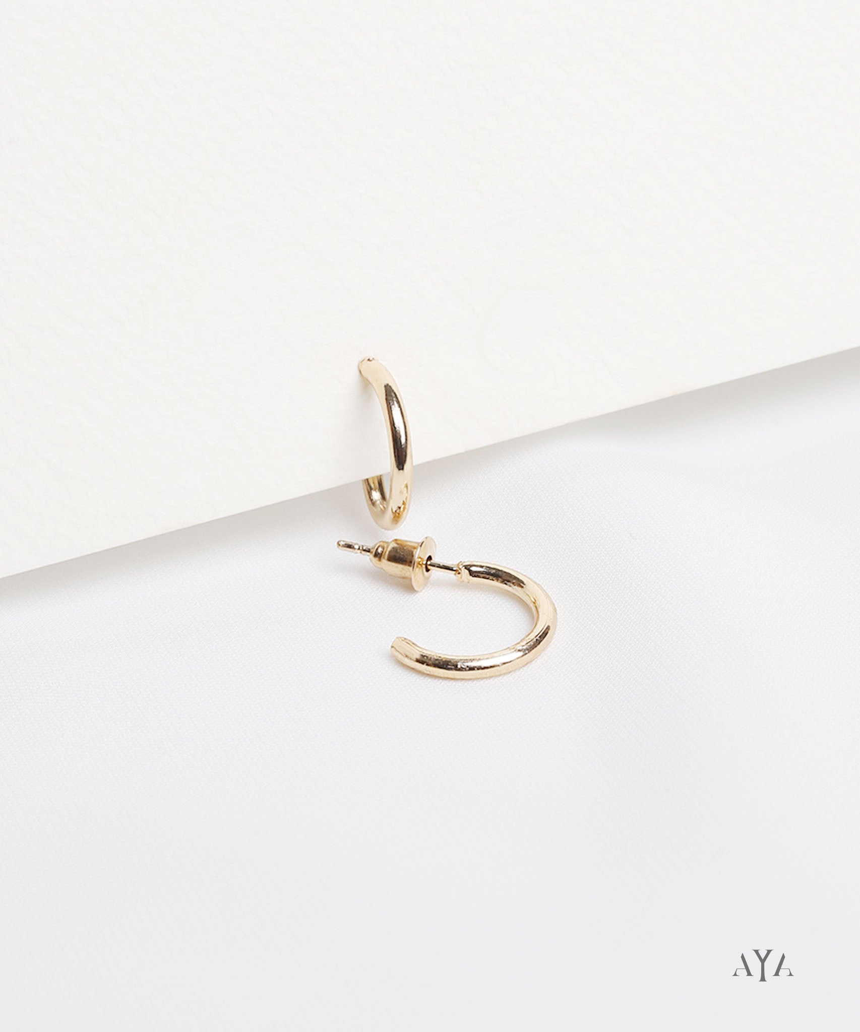 These AYA Gold Classic Open Hoop Earrings feature a clean, polished finish and an open-ended design. Lightweight and comfortable, they are perfect for everyday wear.