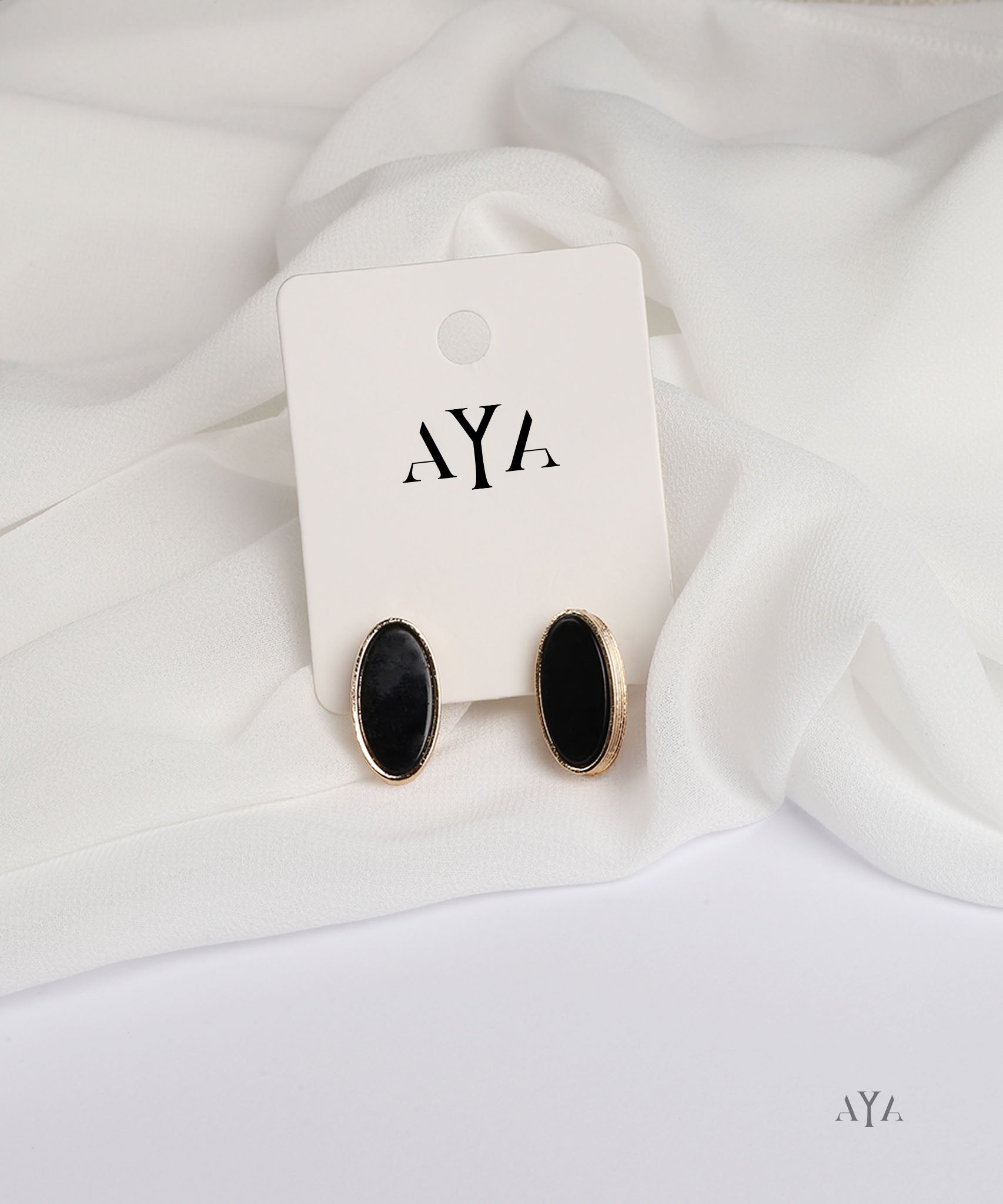 These AYA Gold with Black Oval Stud Earrings feature a black enamel set in a smooth gold-plated frame. Ideal for elevating both everyday outfits and occasion wear.