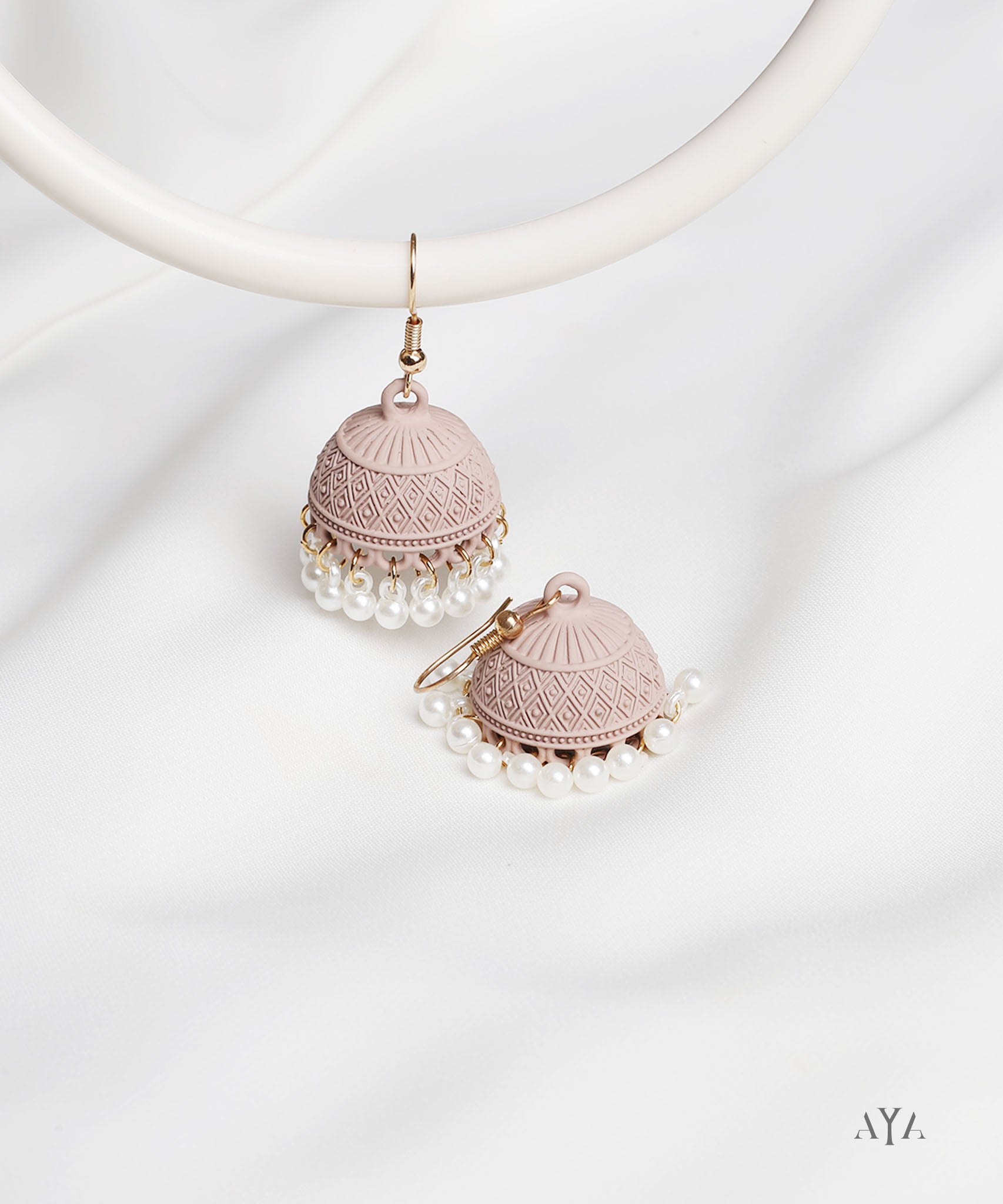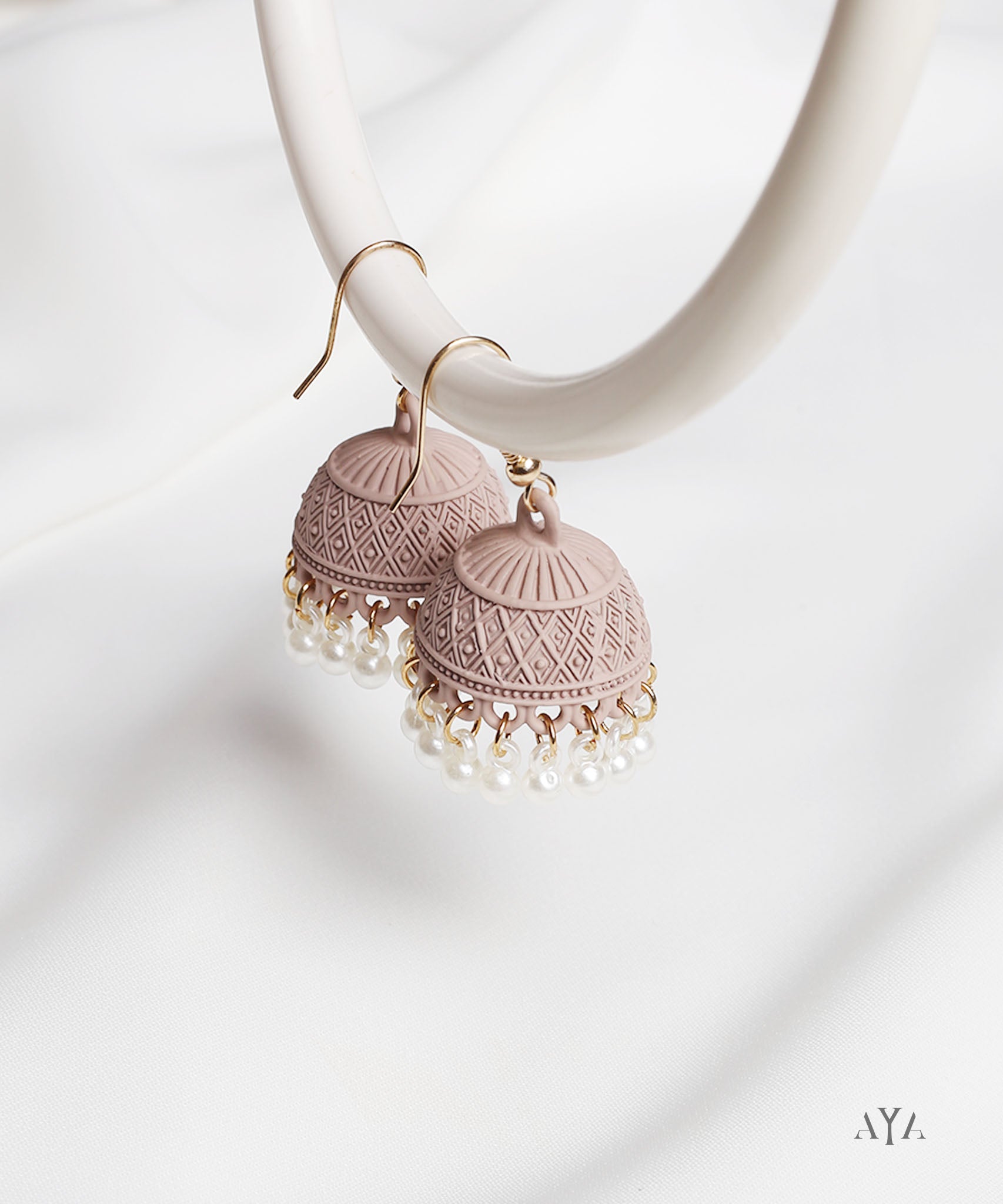AYA Matte Dusty Rose Bisque Pearl Dome Jhumka Earrings