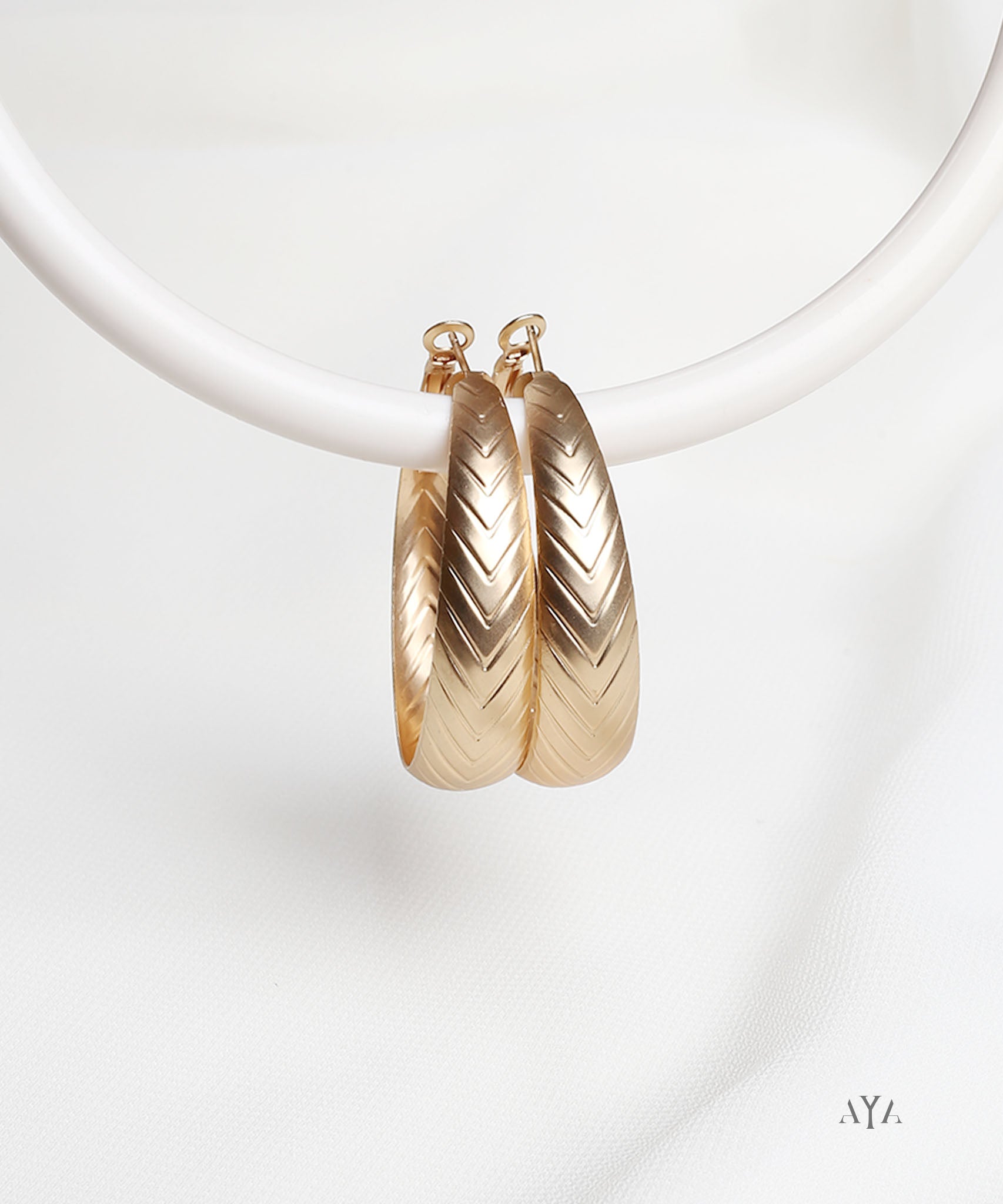 AYA Matte Gold Chevron Groove Hoop Earrings