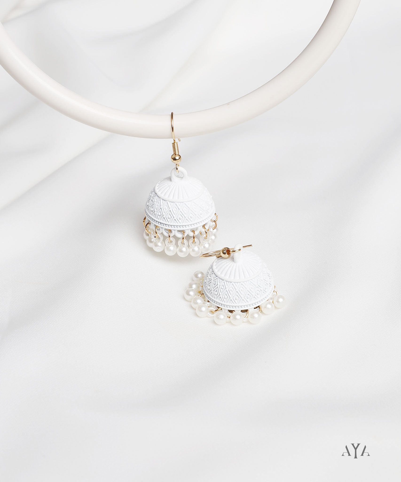 AYA Matte White Pearl Dome Jhumka Earrings