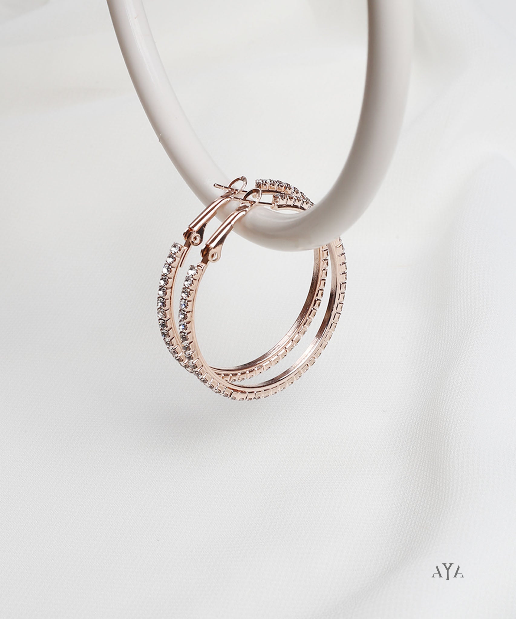 AYA Rose Gold Pave Crystal Hoop Earrings