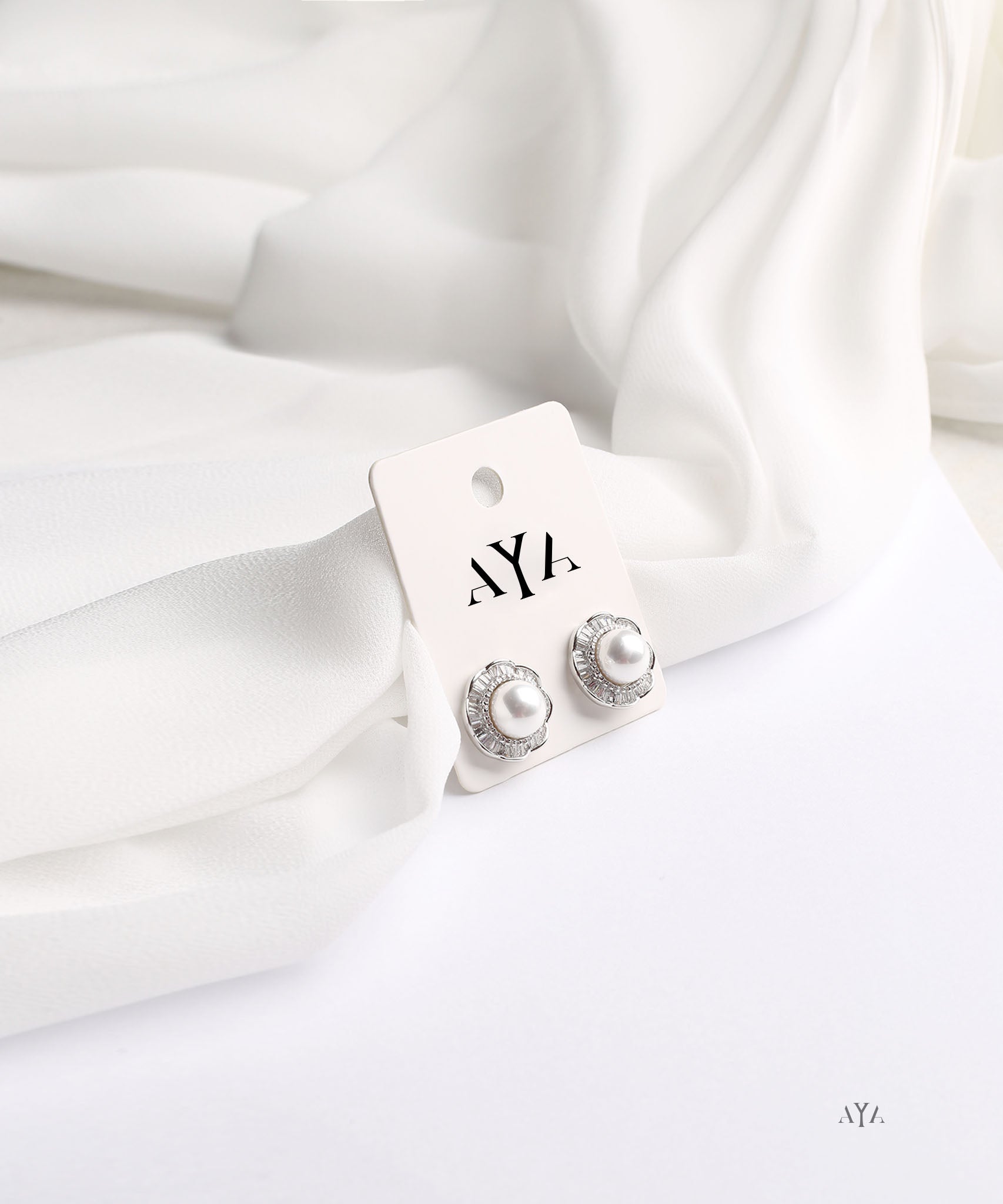 AYA Silver Crystal Bloom Pearl Stud Earrings