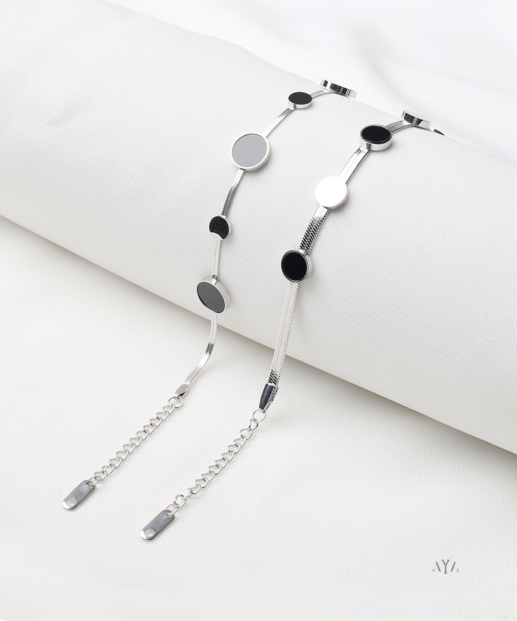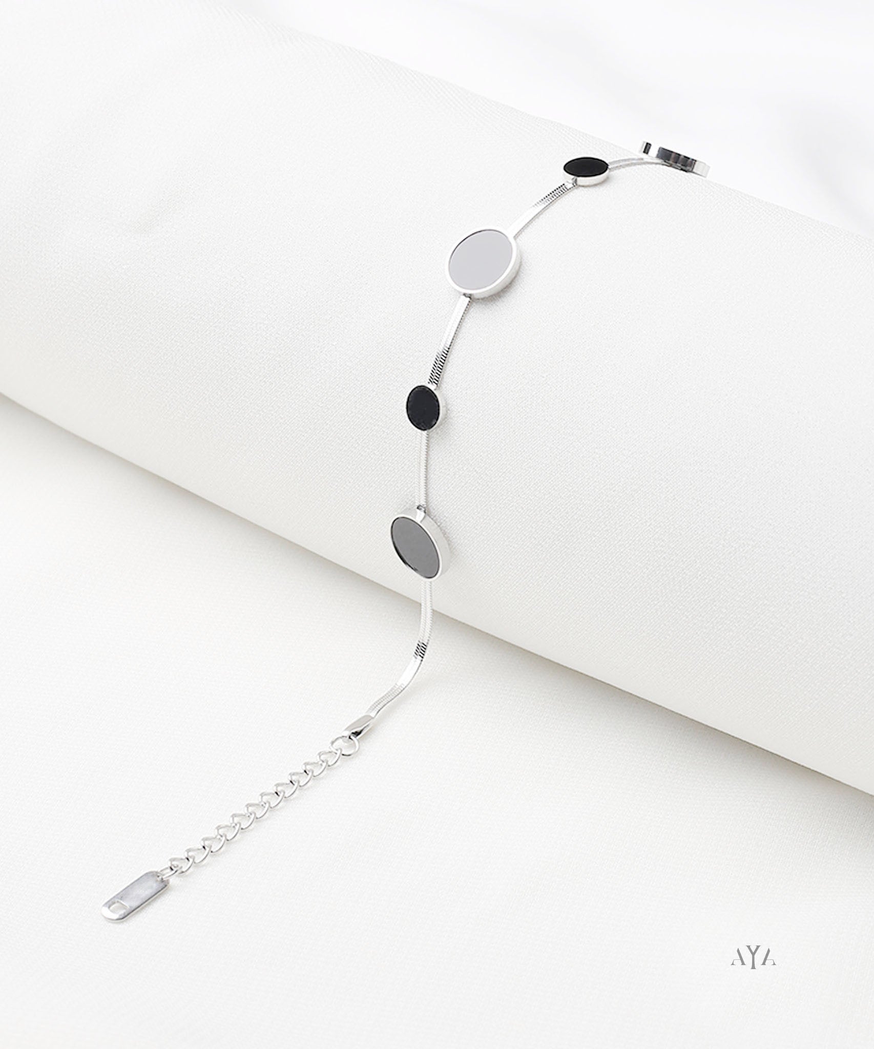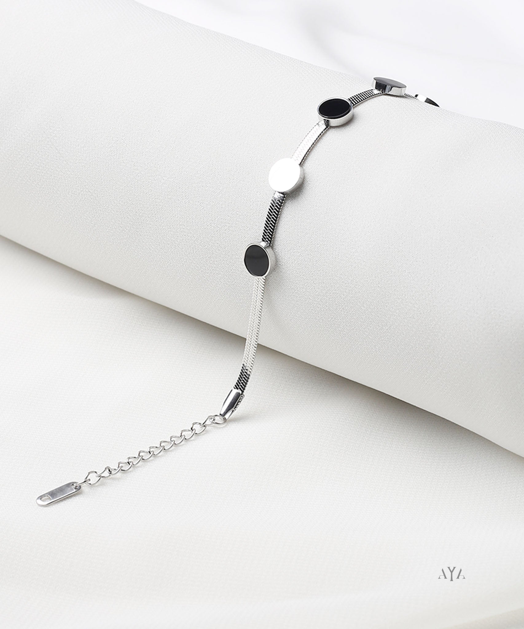 This AYA Silver Enamel Circle Bracelet features a circle design with a polished finish. Each bracelet is sold separately, making it perfect for mixing, matching, or wearing solo. Ideal for casual to workwear looks.