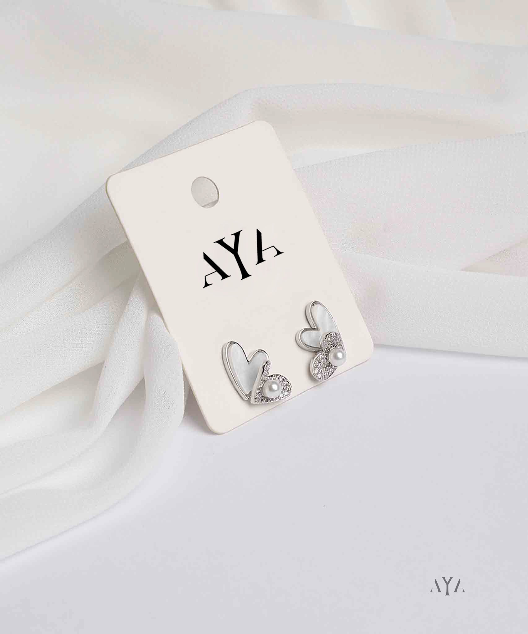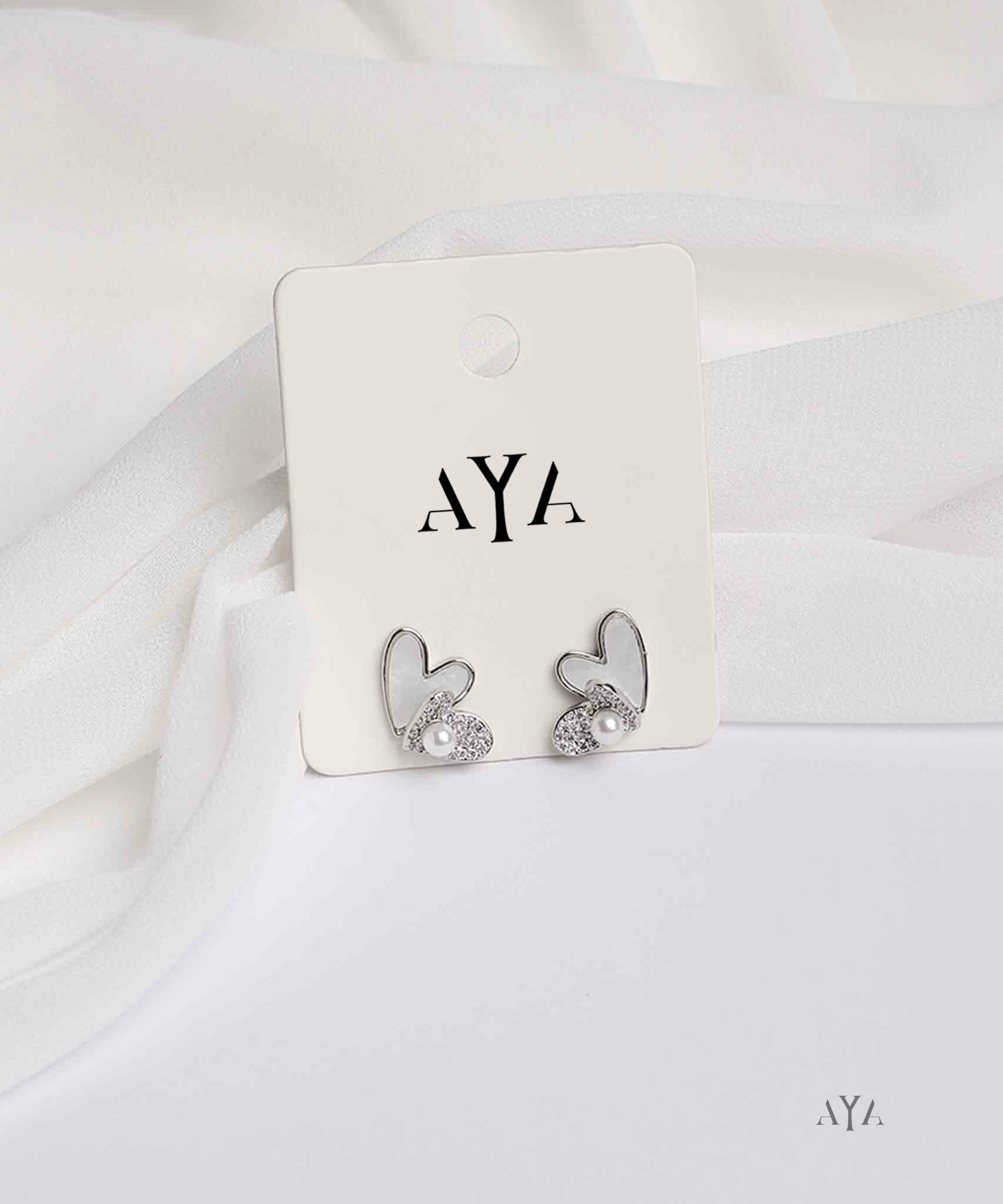 These AYA Silver Heart Pearl Accent Stud Earrings feature a heart design in a soft silver tone, these studs are adorned with a delicate pearl and encrusted with tiny crystals for a subtle sparkle. Perfect for both casual and semi-formal occasions.