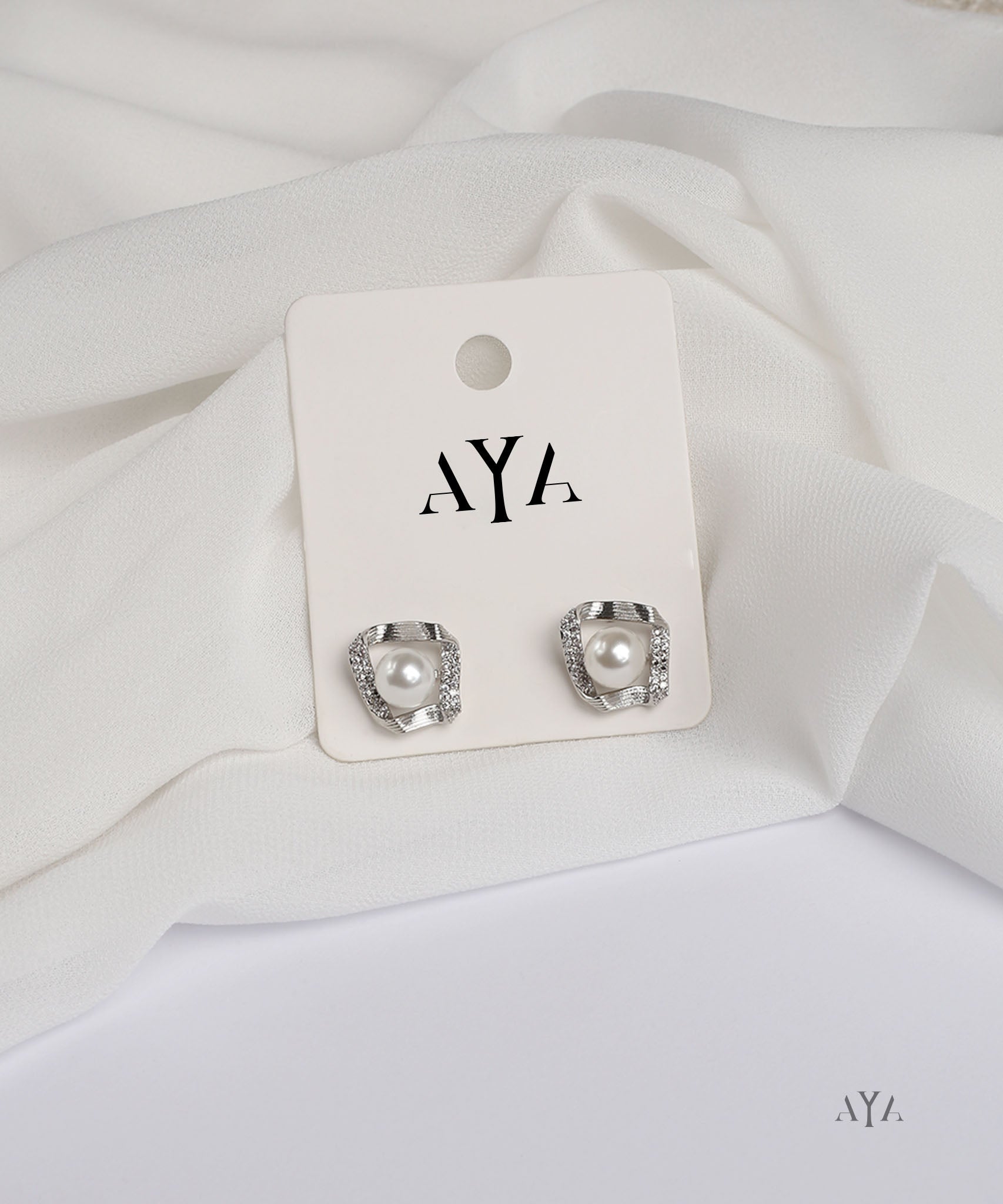 These AYA Silver Pearl Crest Stud Earrings feature a central pearl framed by textured silver curves and delicate rhinestone accents, striking the perfect balance between modern and classic charm. Ideal for formal gatherings, workwear, or everyday glam.