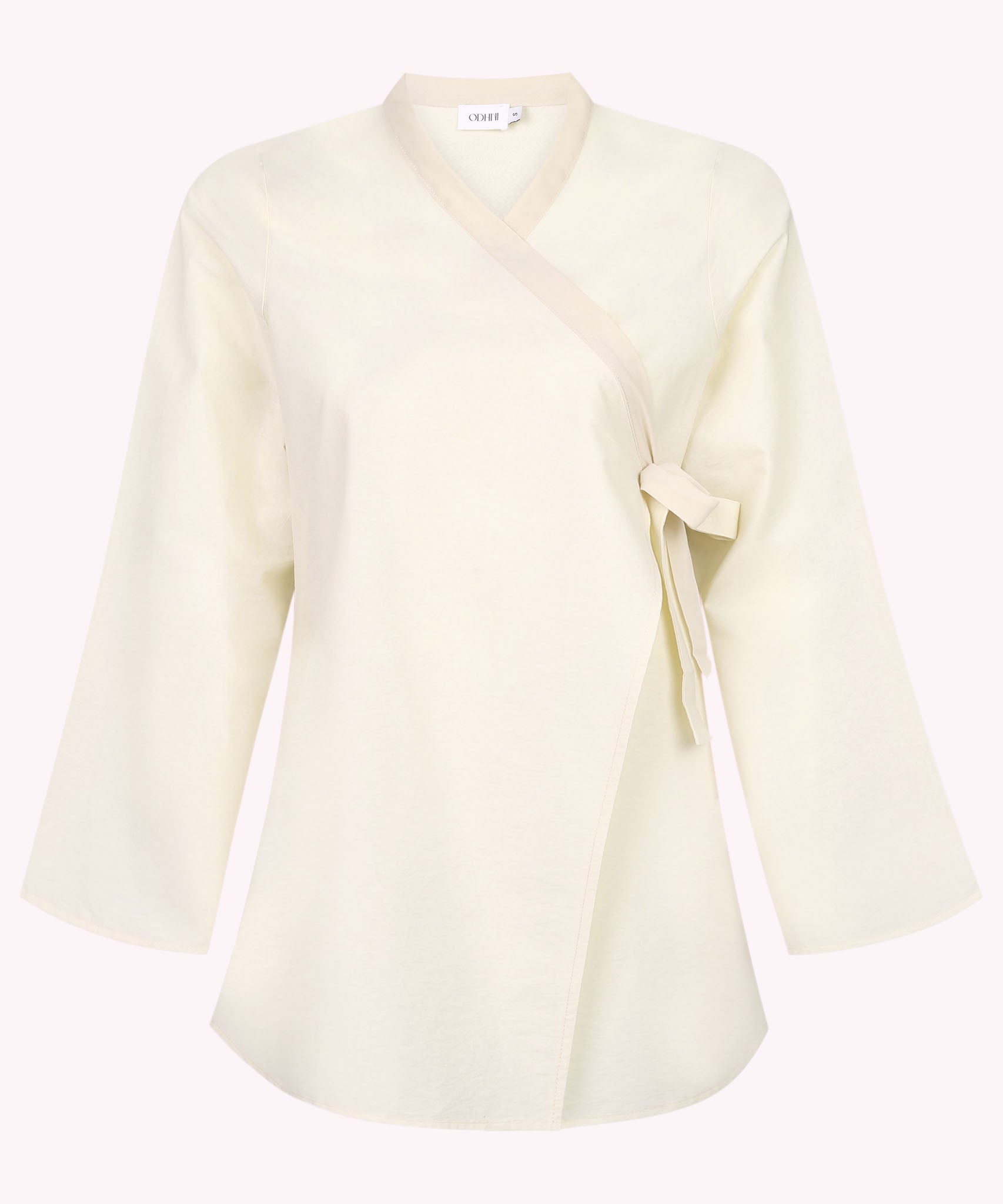 This Cream Cloud Wrap Short Kimono is designed with a flattering V-neckline and soft bell sleeves for a relaxed yet refined look. It features a wrap front that ties at the waist, offering an adjustable fit and easy layering. Made from an opaque fabric, this kimono provides comfortable coverage for everyday wear.