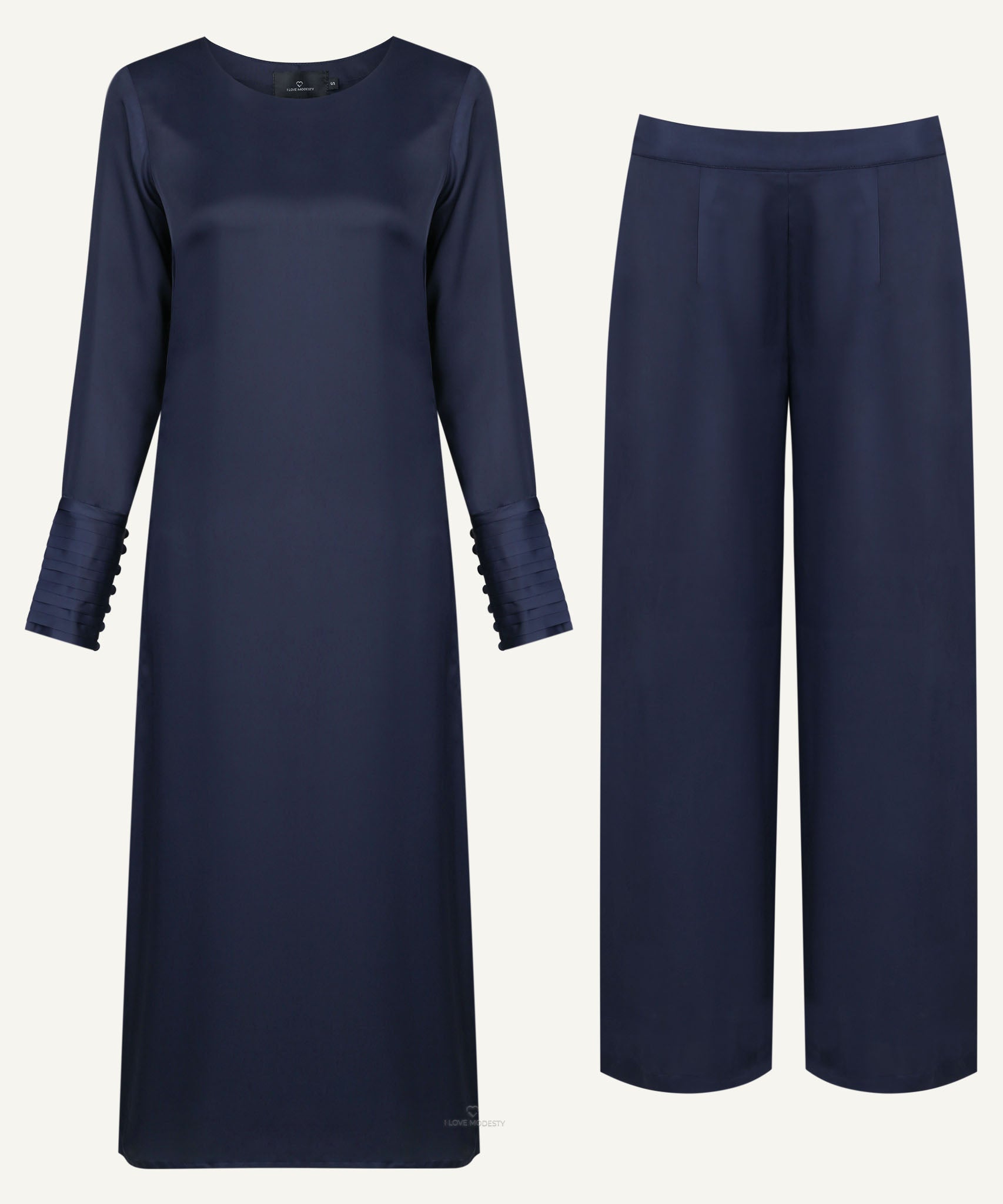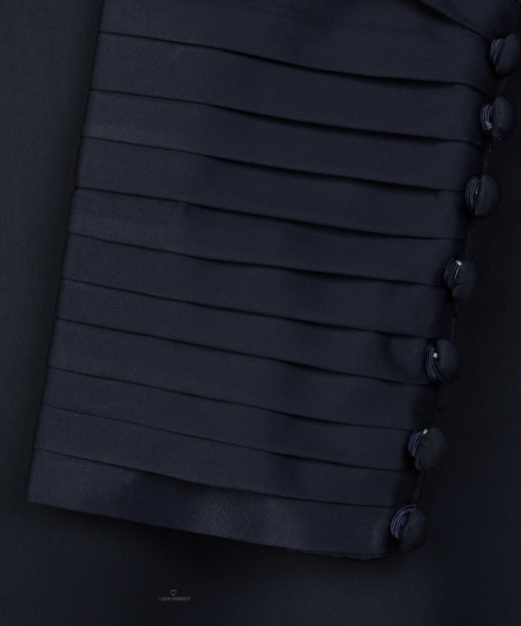 Dark Blue Long Sleeve Pleated Cuff Midi-Length Matching Set