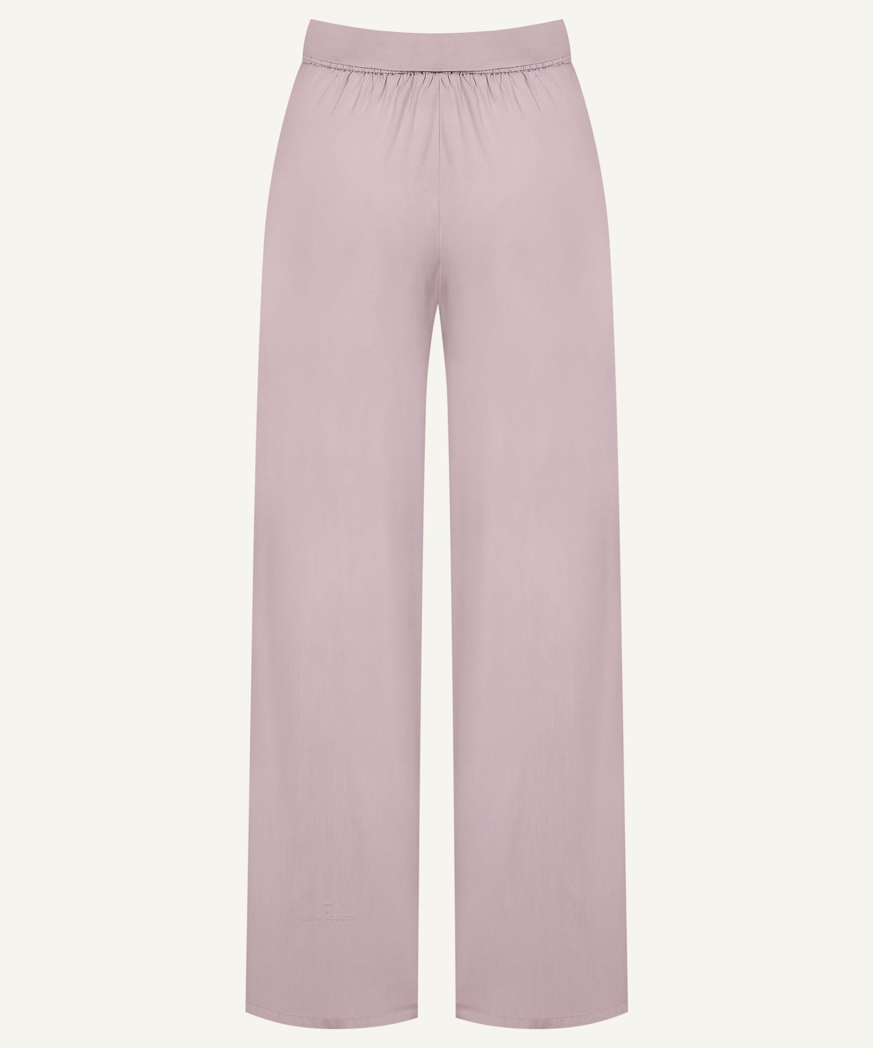 The Dusky Dahlia Wide Legged Pants are crafted from flowy fabric, featuring elegantly draped wide legs, a stylish belt, convenient side pockets, and a stretchable waistband for a comfortable fit.