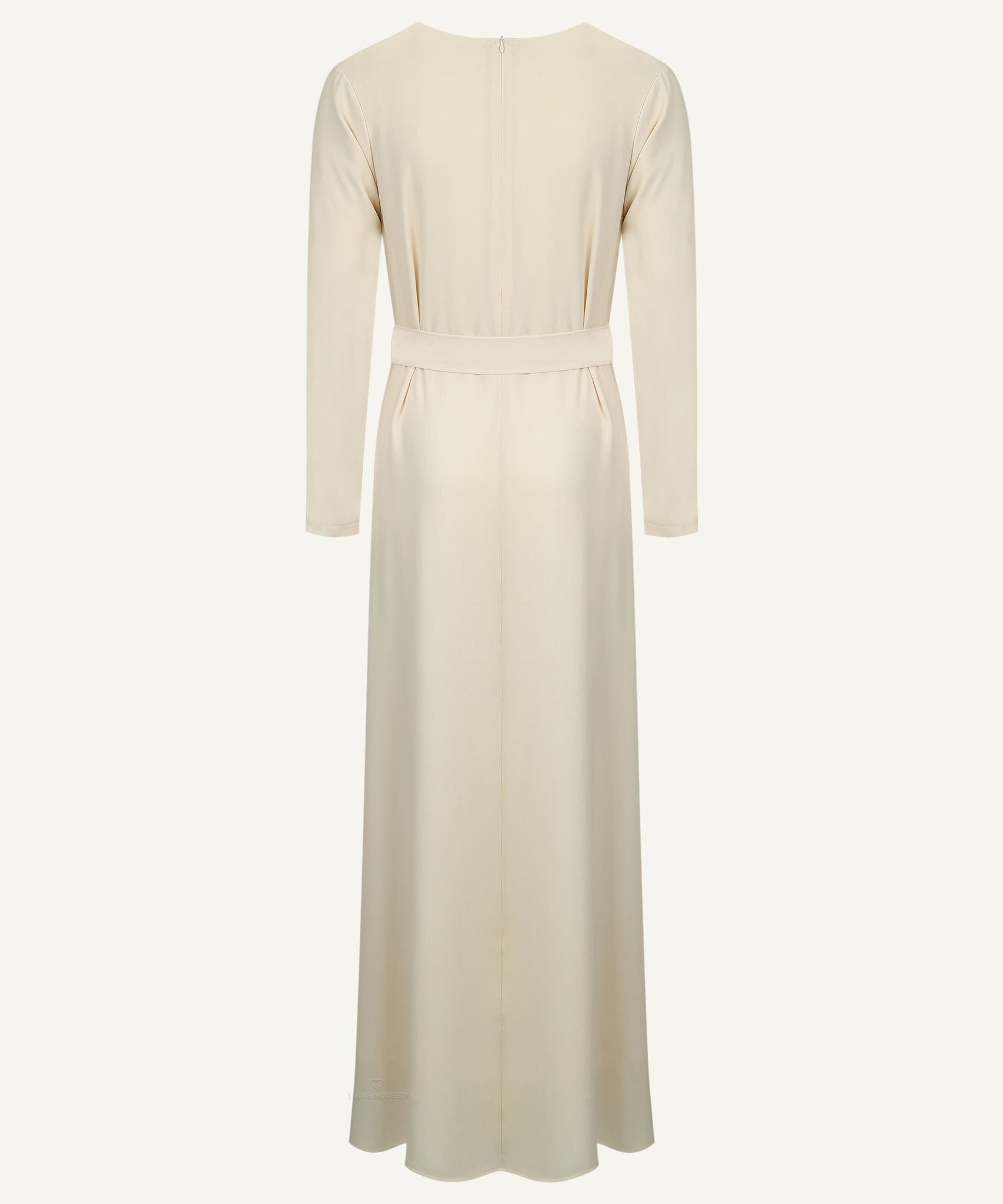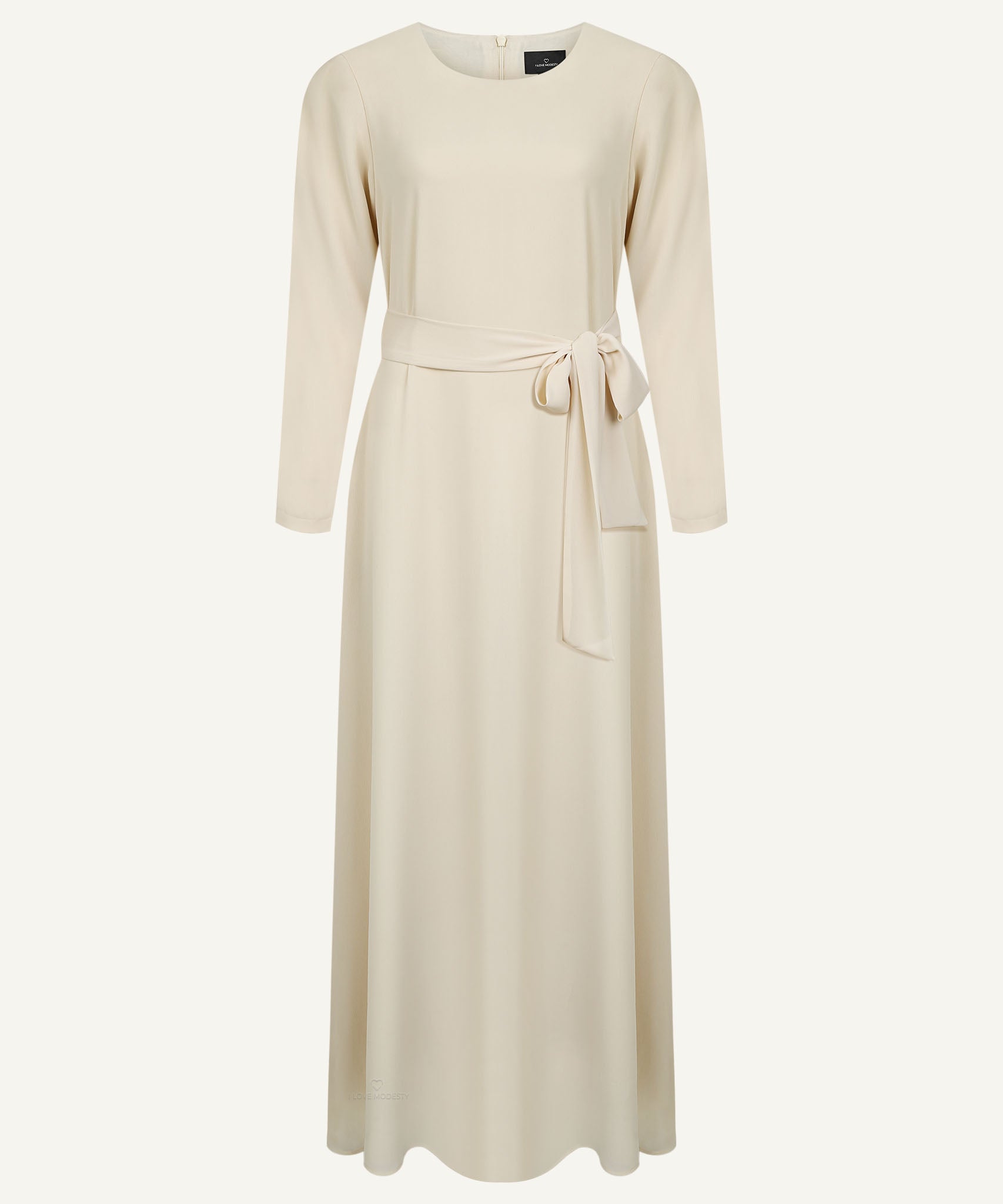 Ivory Oat Chiffon Classic A-Line Long Sleeve Maxi Abaya Dress