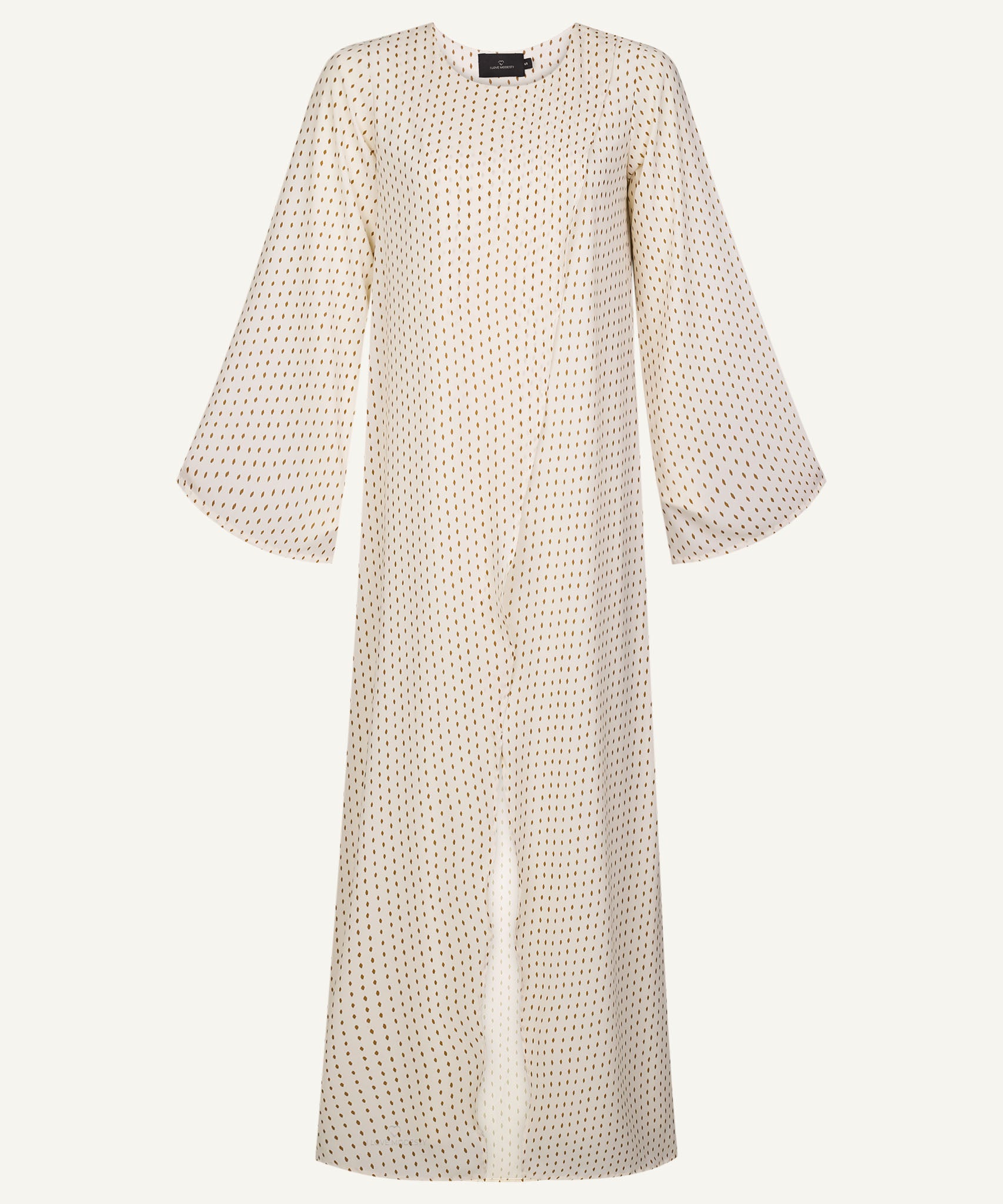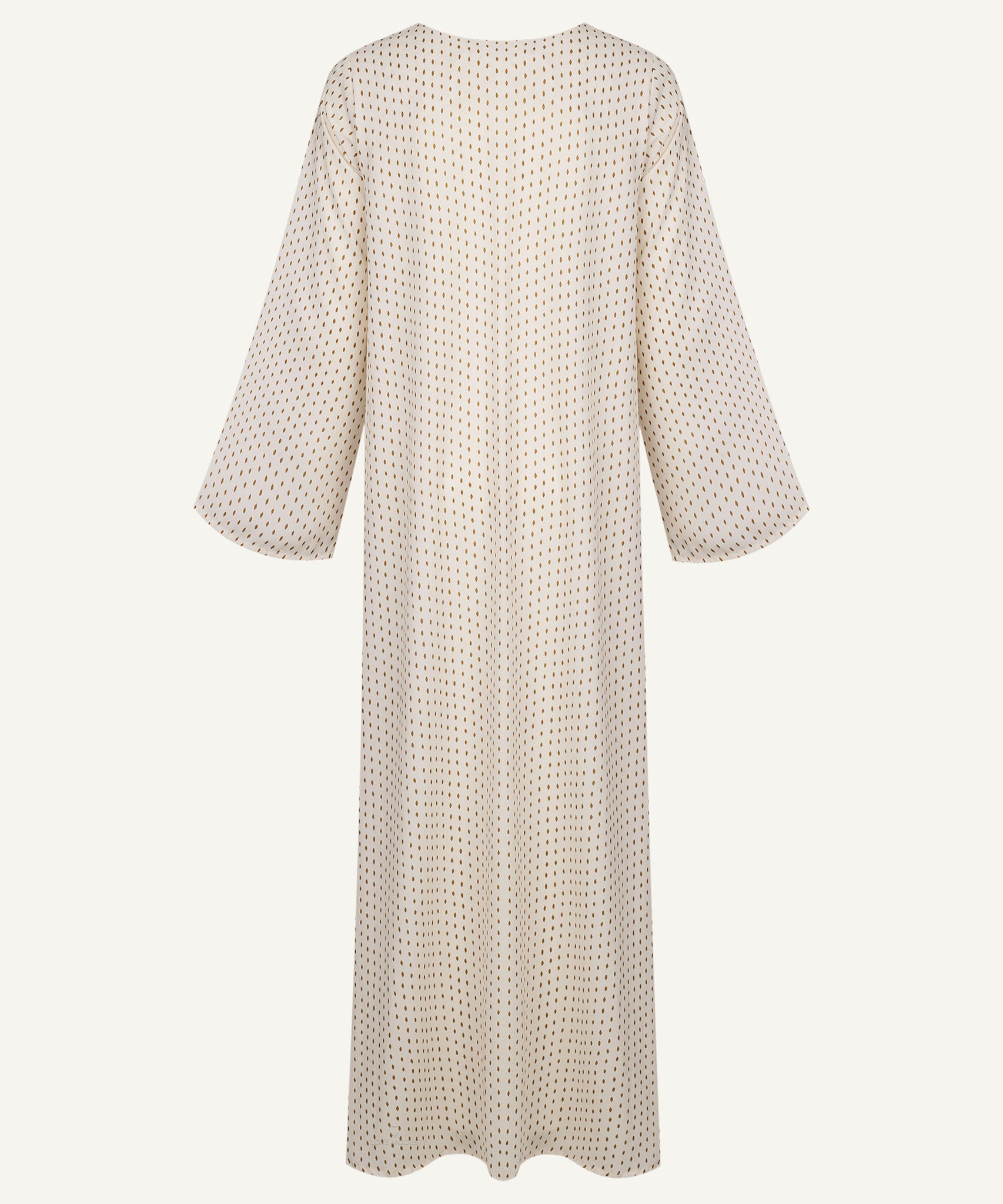 This Ivory Printed Overlap A-Line Maxi Dress is crafted from lightweight georgette fabric with a straight silhouette and overlap design. Suitable for casual gatherings and daytime events in mild to warm weather.