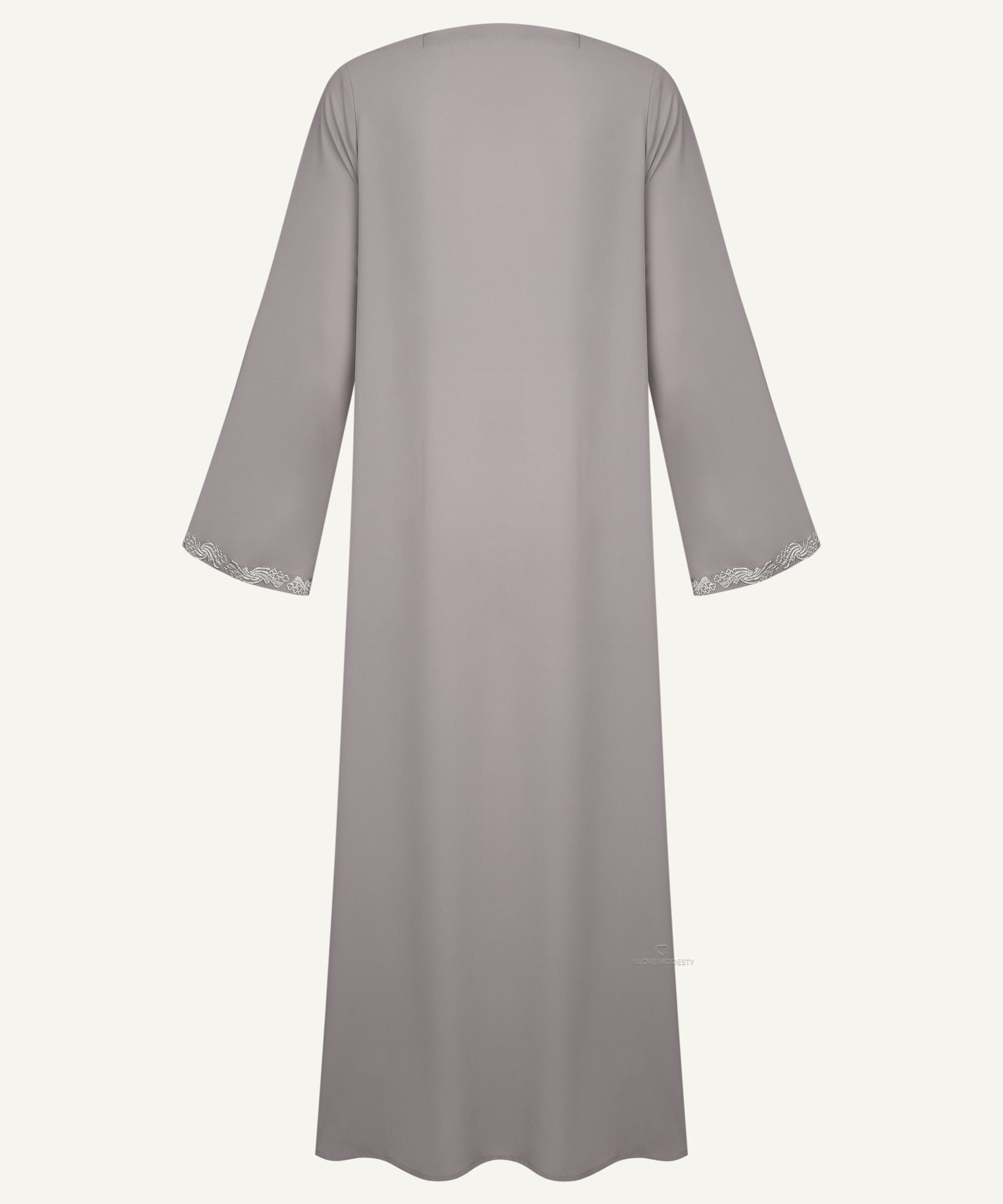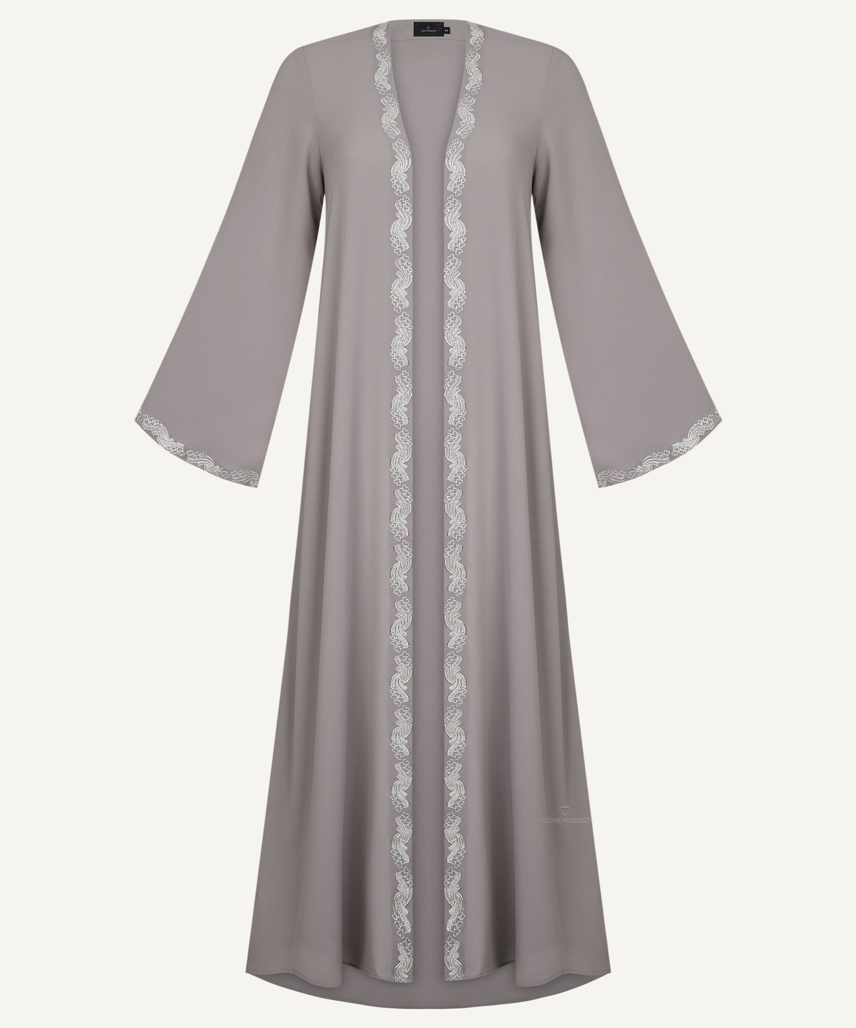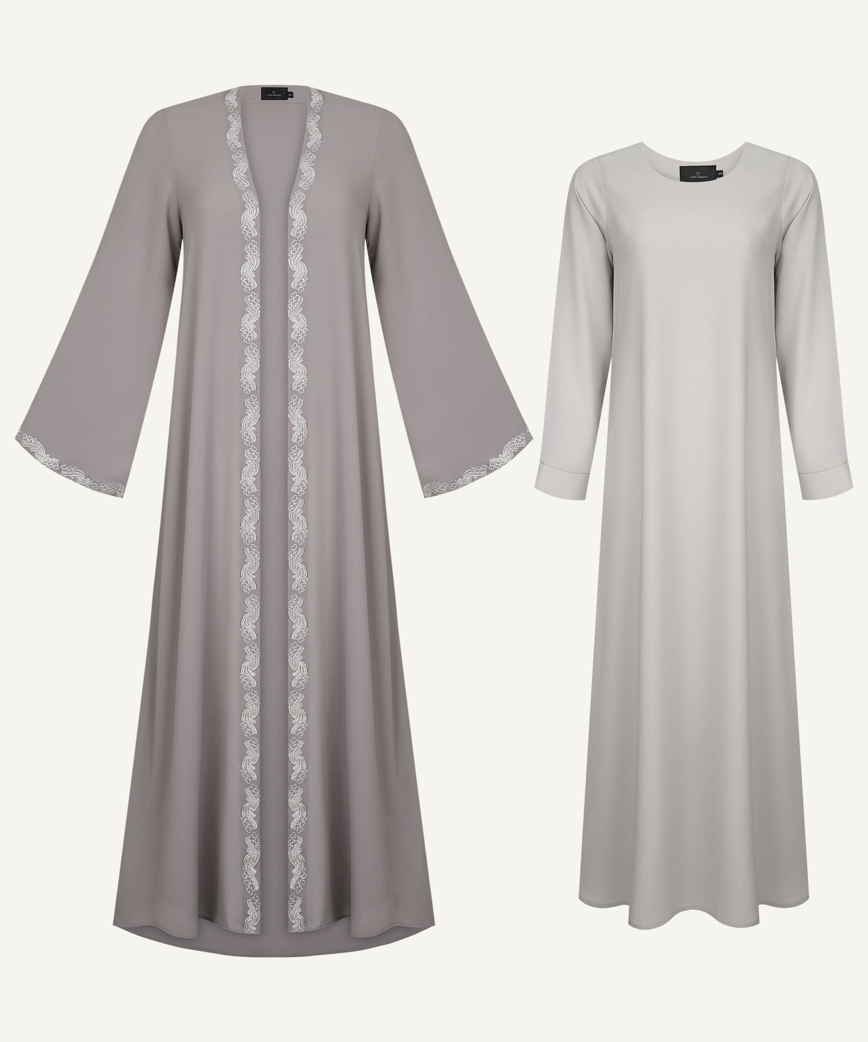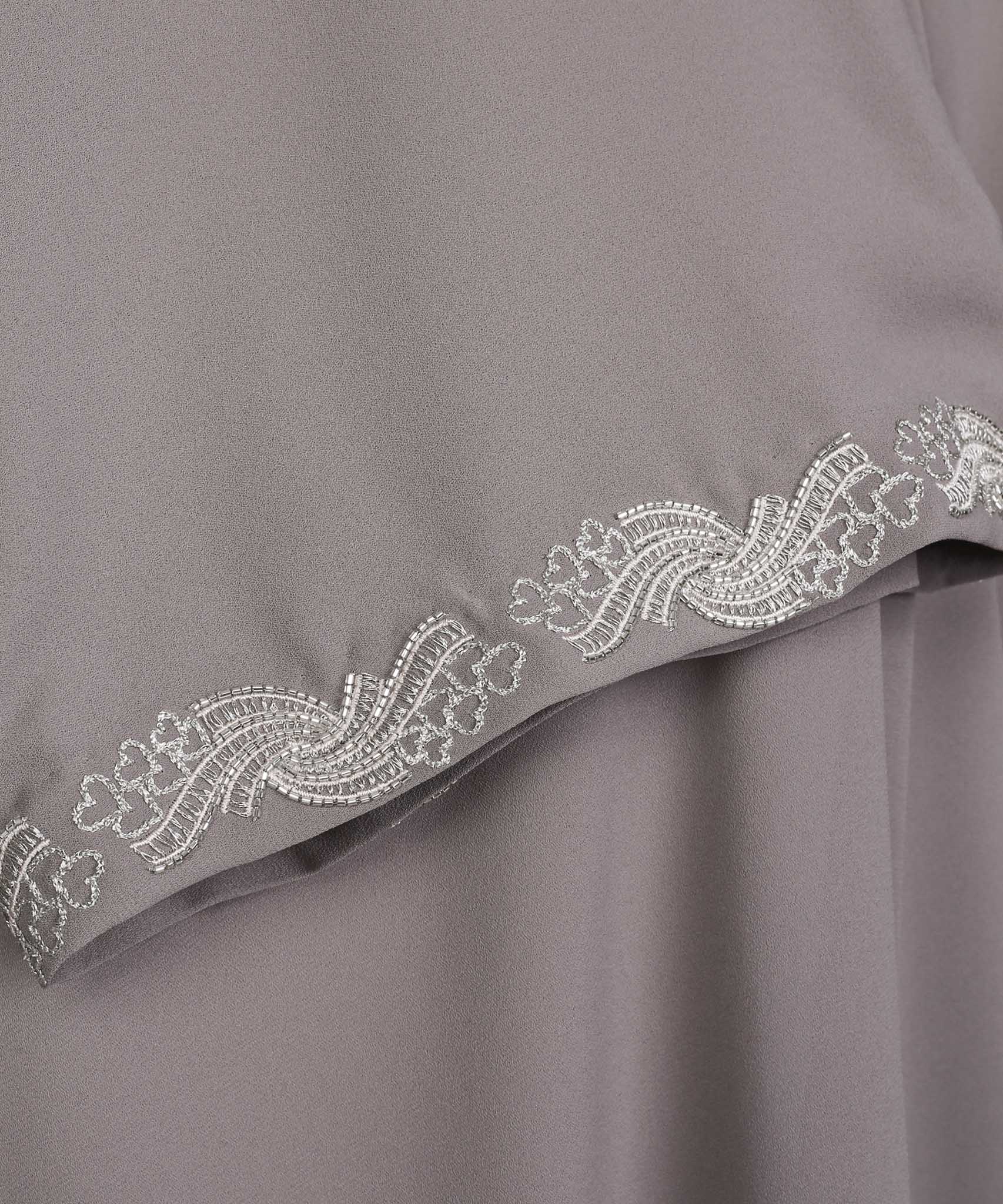 Light Taupe Embroidered A-Line Cardigan Abaya Set