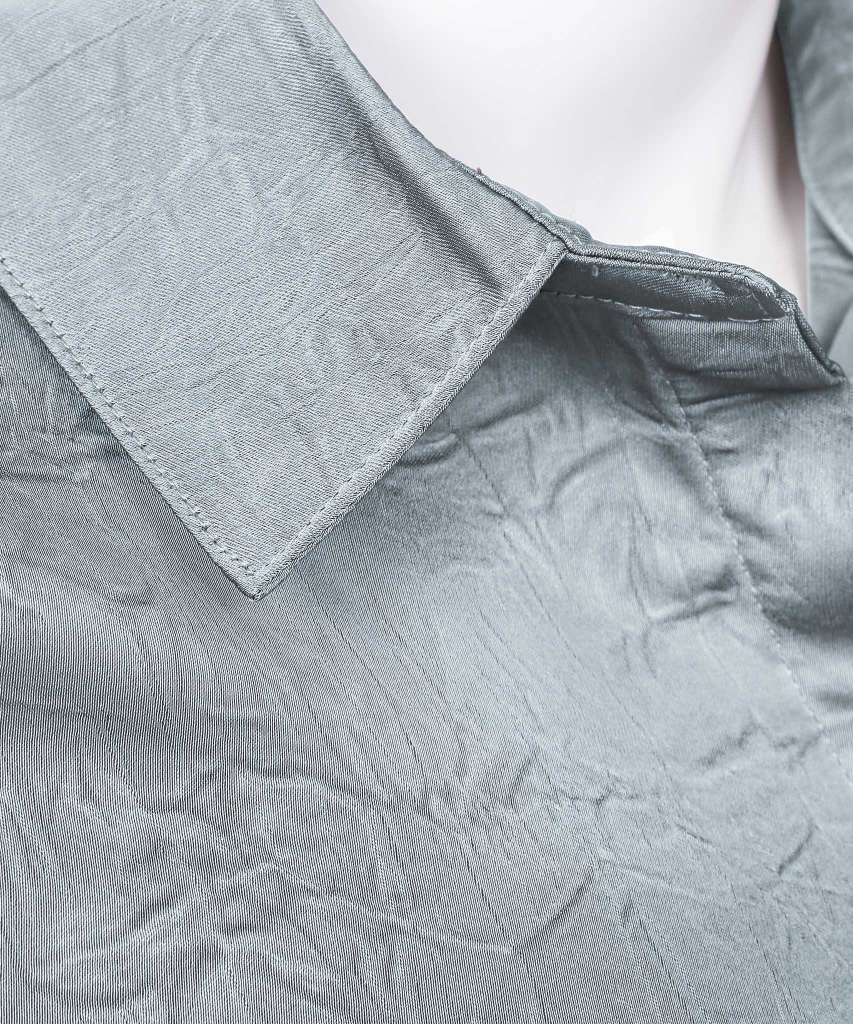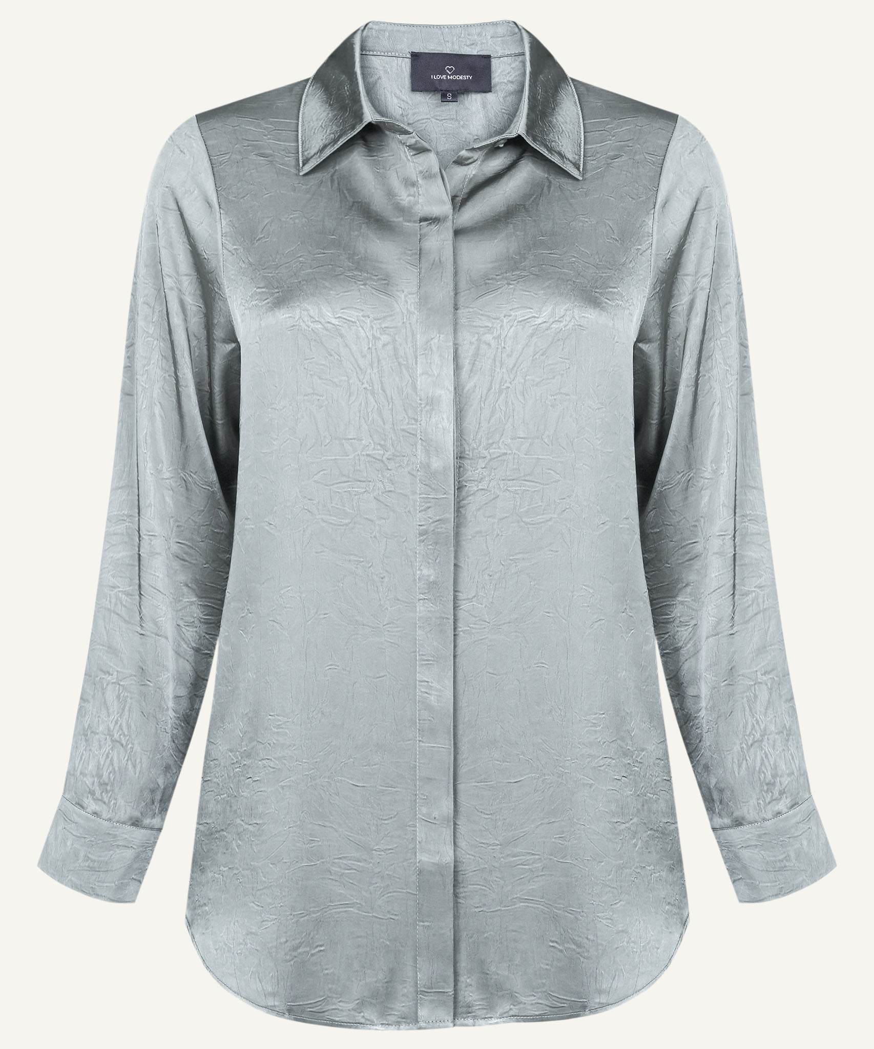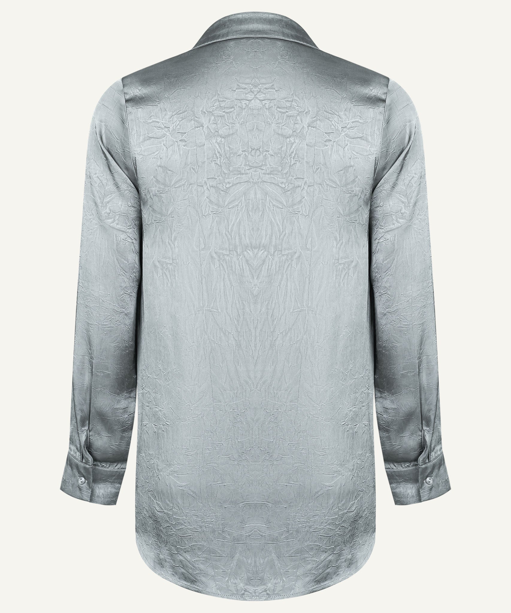 Pale Slate Satin Long Sleeve Shirt Blouse
