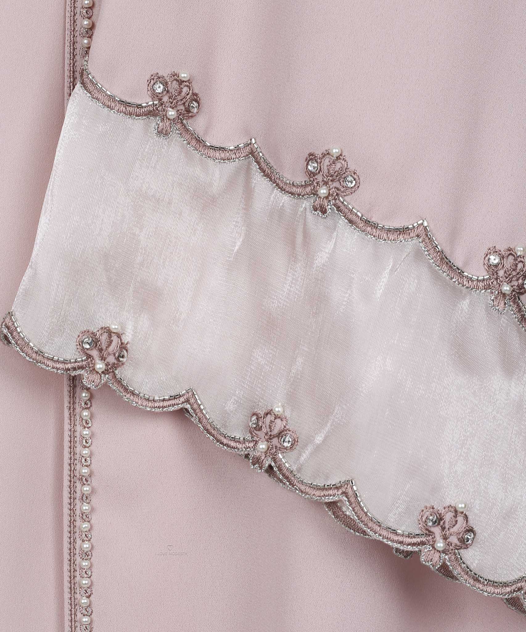 Soft Pink Embellished Sleeve A-Line Cardigan Set