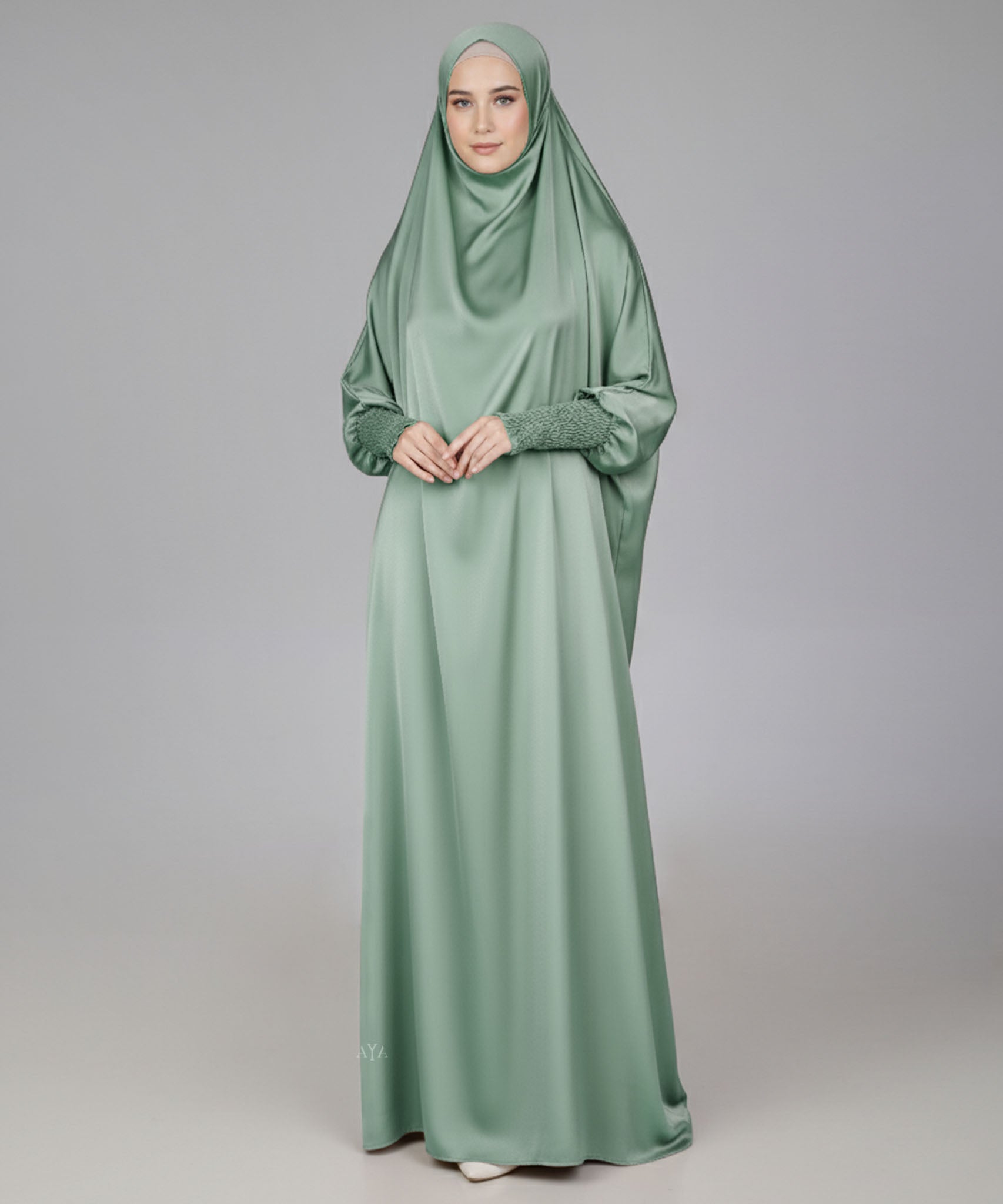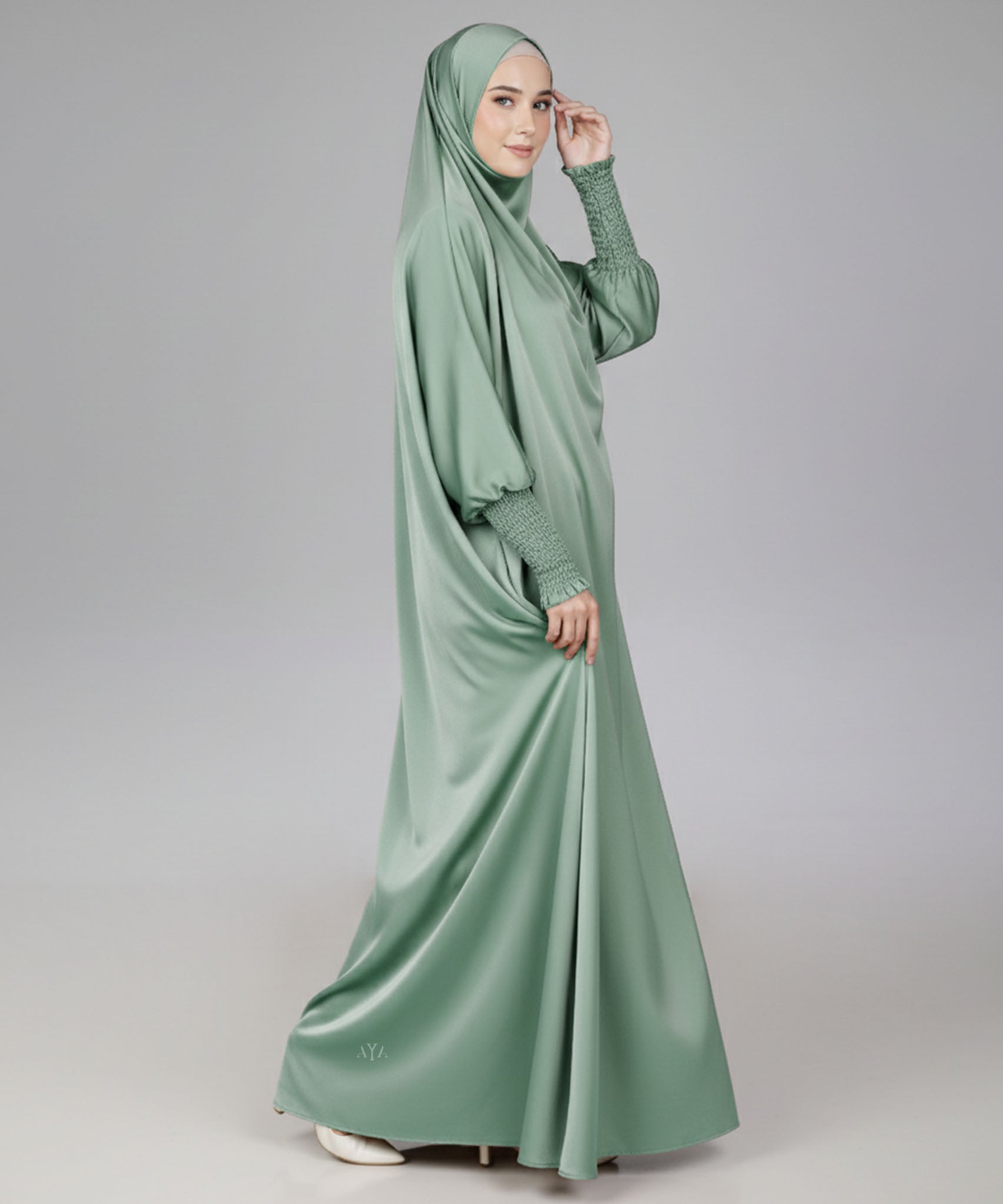 Teal Green Satin Prayer Dress (Jilbab)