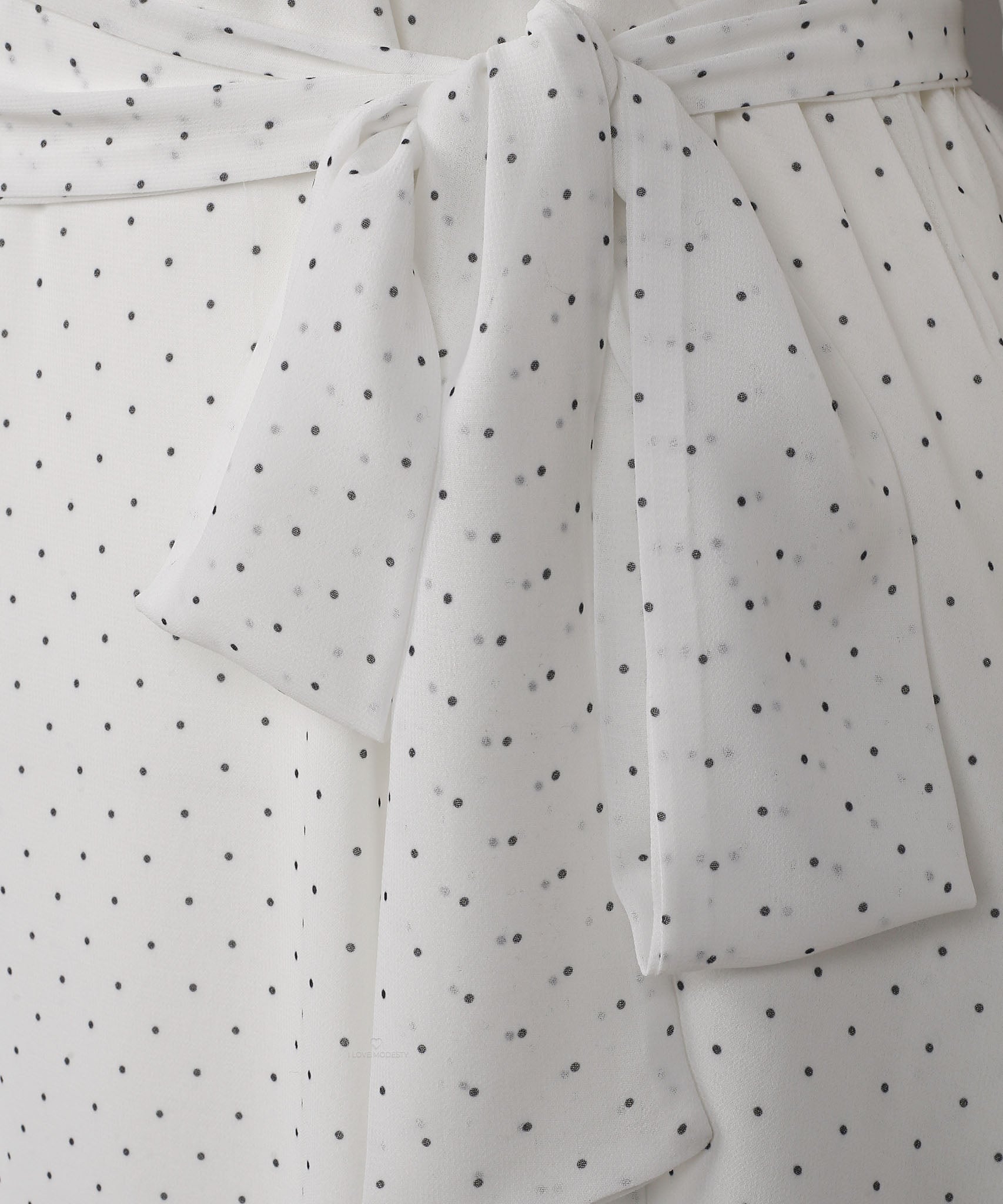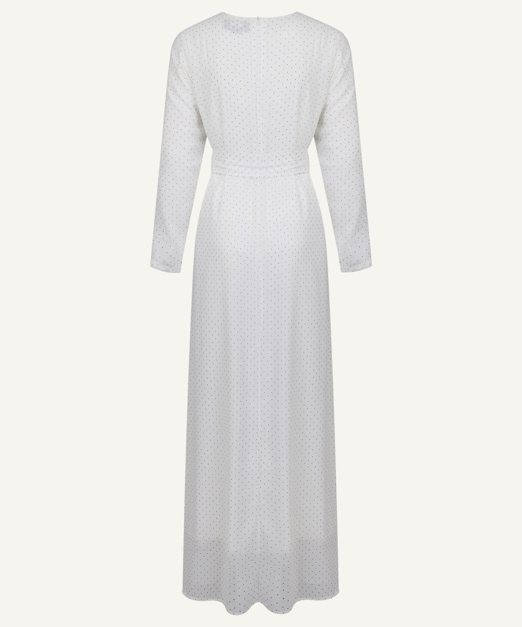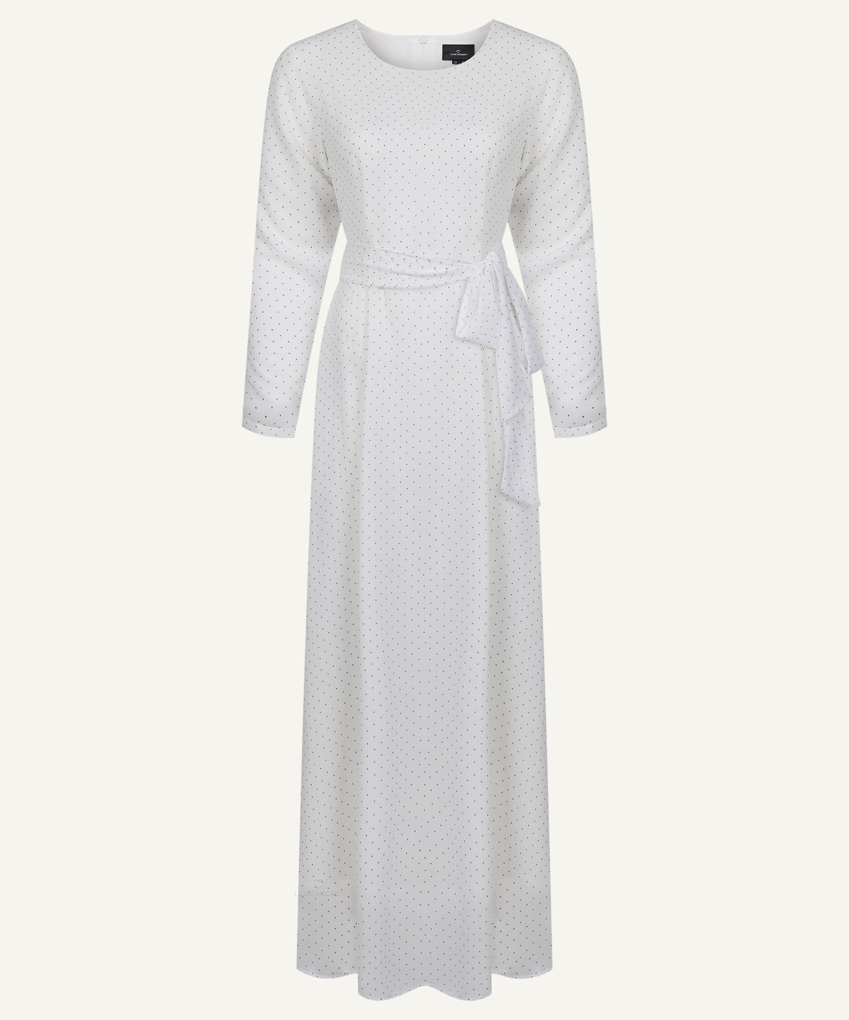 White Polka Dot Chiffon Classic A-Line Long Sleeve Maxi Abaya Dress
